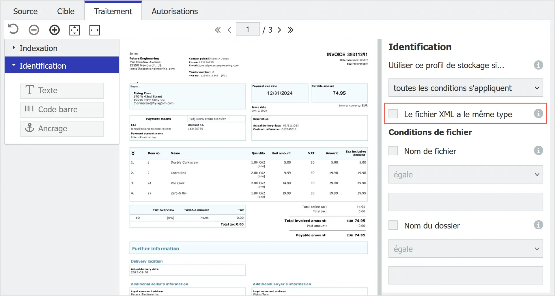 La version DocuWare 7.13 reconnaît désormais des formats non-UBL/CII comme FatturaPA (Italie) et KSeF (Pologne). Les factures peuvent être envoyées dans une seule boîte mail : DocuWare détecte automatiquement le format et déclenche le traitement adapté.